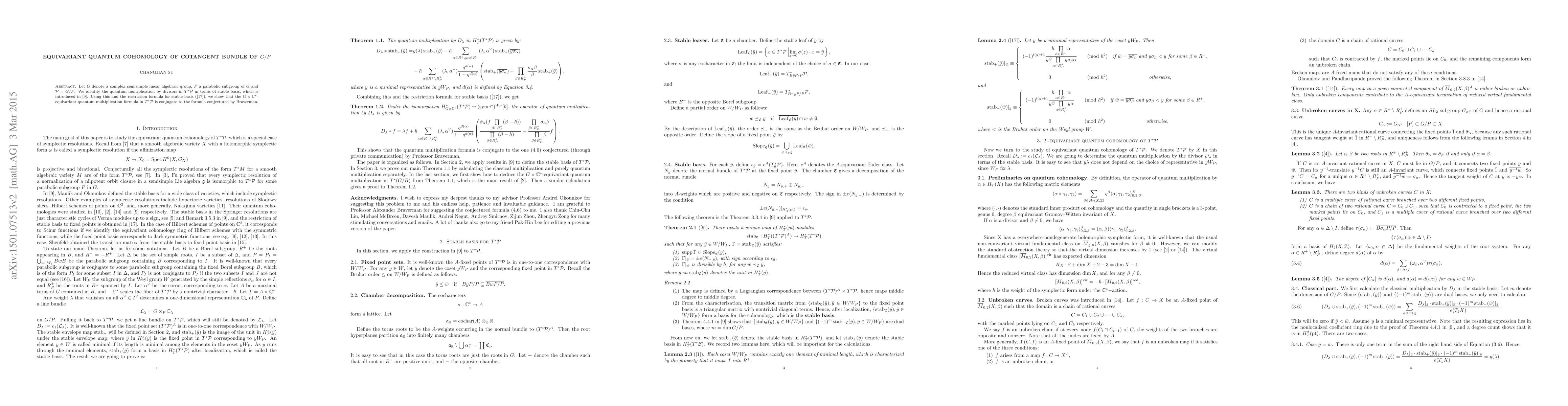 Researchers investigate the quantum cohomology of the cotangent bundle of a complex semisimple linear algebraic group, proving it is conjugate to a conjectured formula by Braverman.