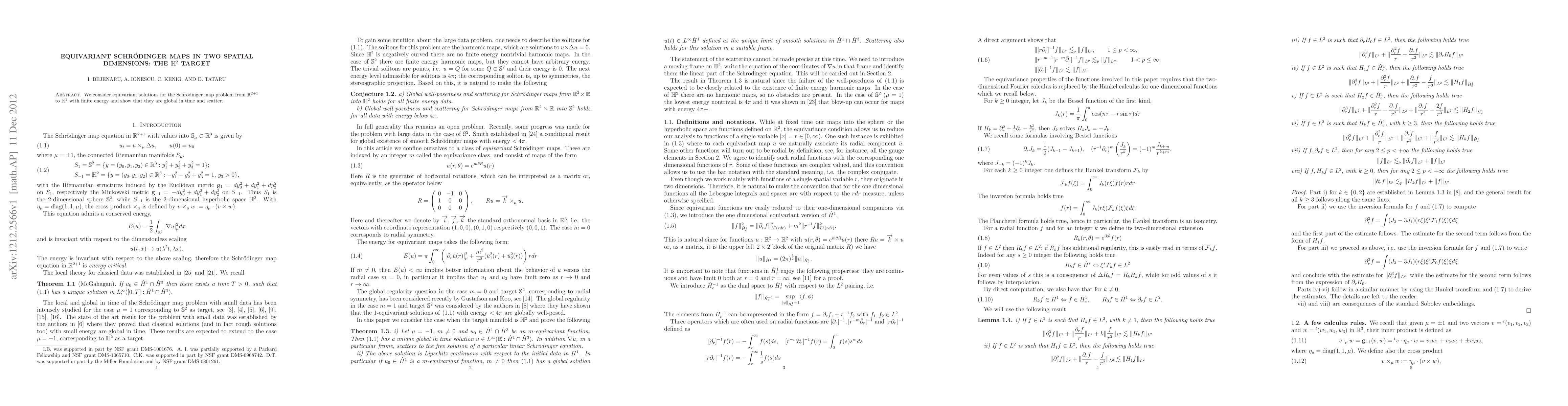 Summary: This paper investigates equivariant solutions for the Schrödinger map problem from three-dimensional space to the hyperbolic plane, demonstrating their global existence and scattering behavior for finite energy configurations.
