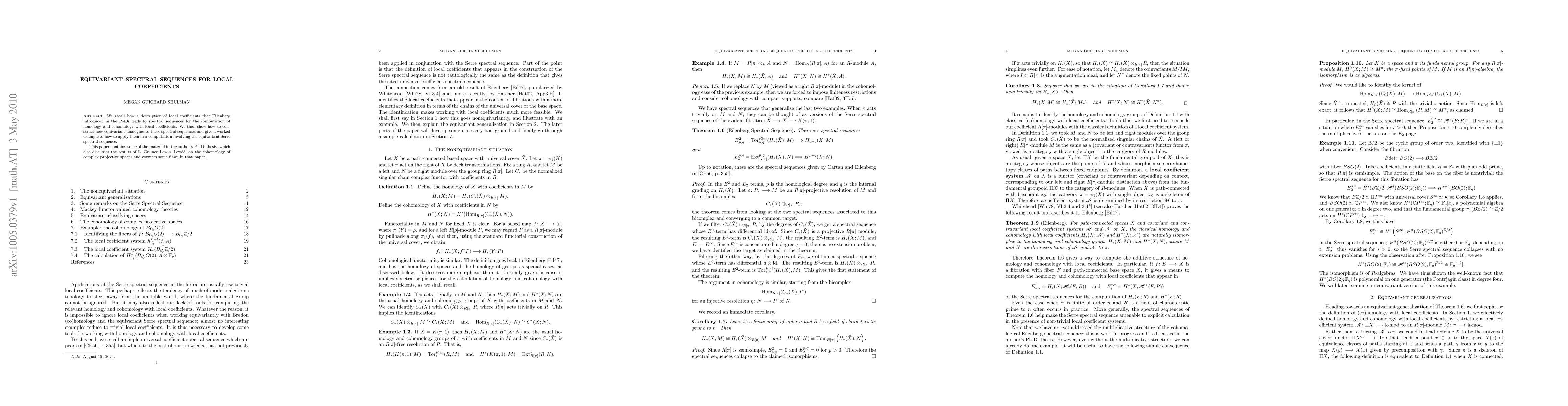 Summary: The paper discusses the construction of equivariant spectral sequences for local coefficients, originally introduced by Eilenberg, and provides an example using the equivariant Serre spectral sequence, while also addressing corrections to earlier work by L. Gaunce Lewis on the cohomology of complex projective spaces.