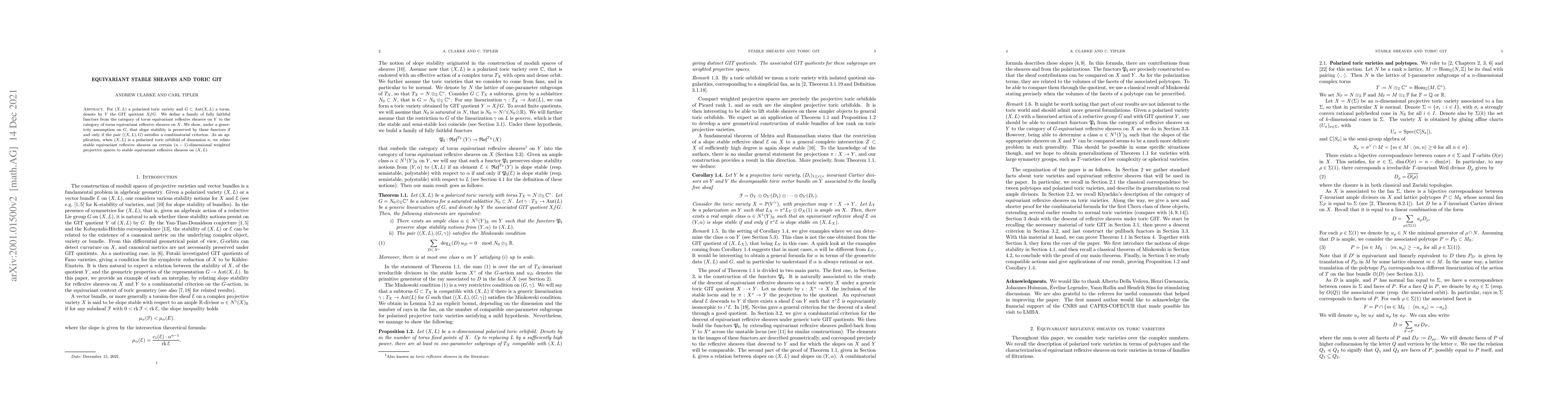 This paper establishes a connection between equivariant stable sheaves on polarized toric varieties and their GIT quotients, demonstrating that slope stability is preserved under certain functors if specific combinatorial conditions are met. It also applies these findings to relate stable equivariant reflexive sheaves on toric orbifolds to those on weighted projective spaces.
