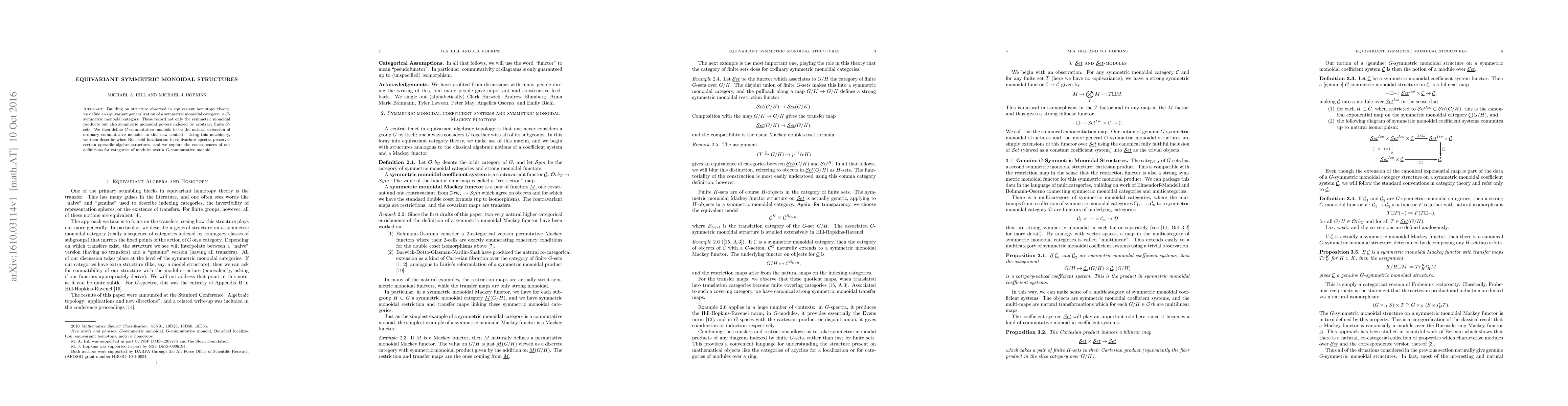 The paper introduces $G$-symmetric monoidal categories, extending symmetric monoidal structures to equivariant homotopy theory, and examines how Bousfield localization preserves operadic algebra structures in this context, along with implications for $G$-commutative monoids and module categories.