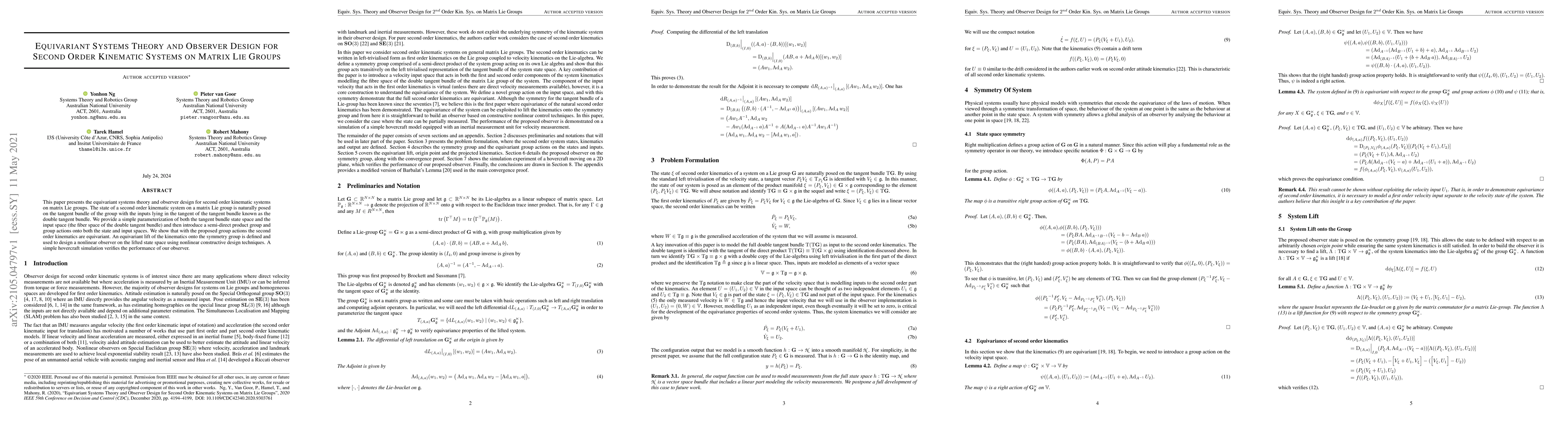 Robert Mahony, Ravi Banavar, Pieter van Goor et al.