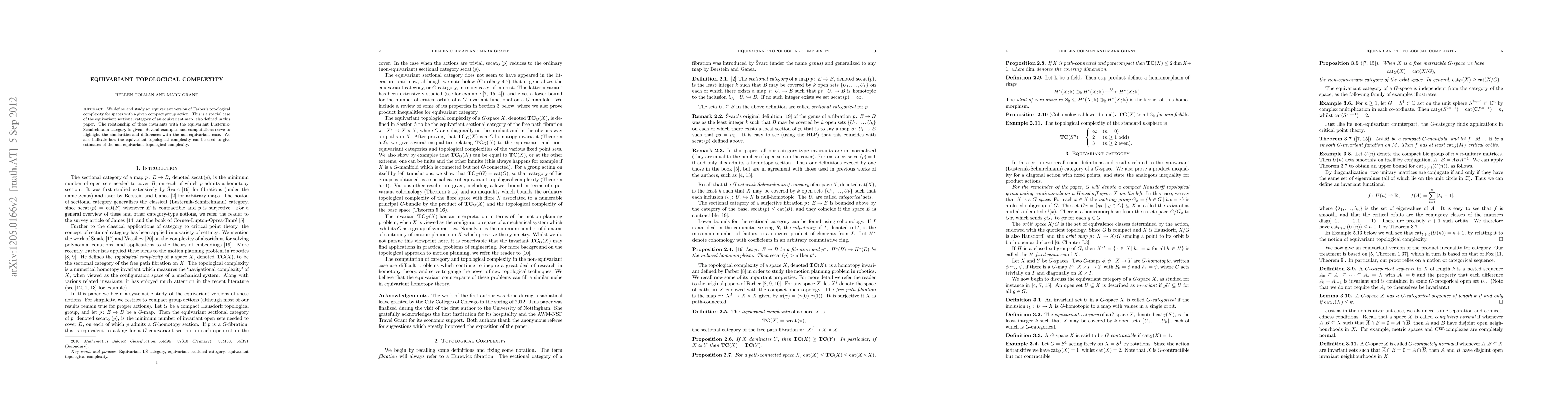 This paper introduces an equivariant version of topological complexity for spaces with group actions, relating it to the equivariant Lusternik-Schnirelmann category and illustrating its applications with examples. The study also shows how equivariant complexity can estimate non-equivariant complexity.