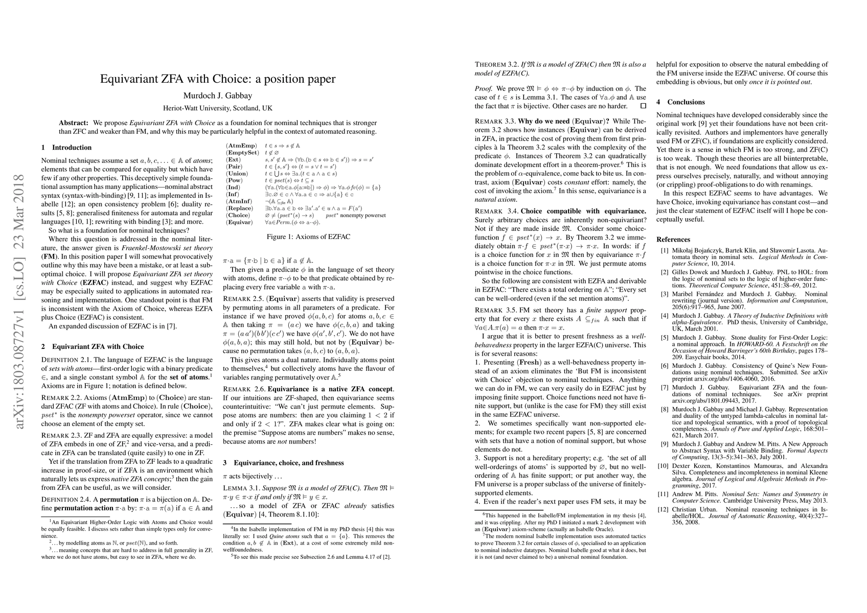 We propose Equivariant ZFA with Choice as a foundation for nominal techniques that is stronger than ZFC and weaker than FM, and why this may be particularly helpful in the context of automated reasoning.