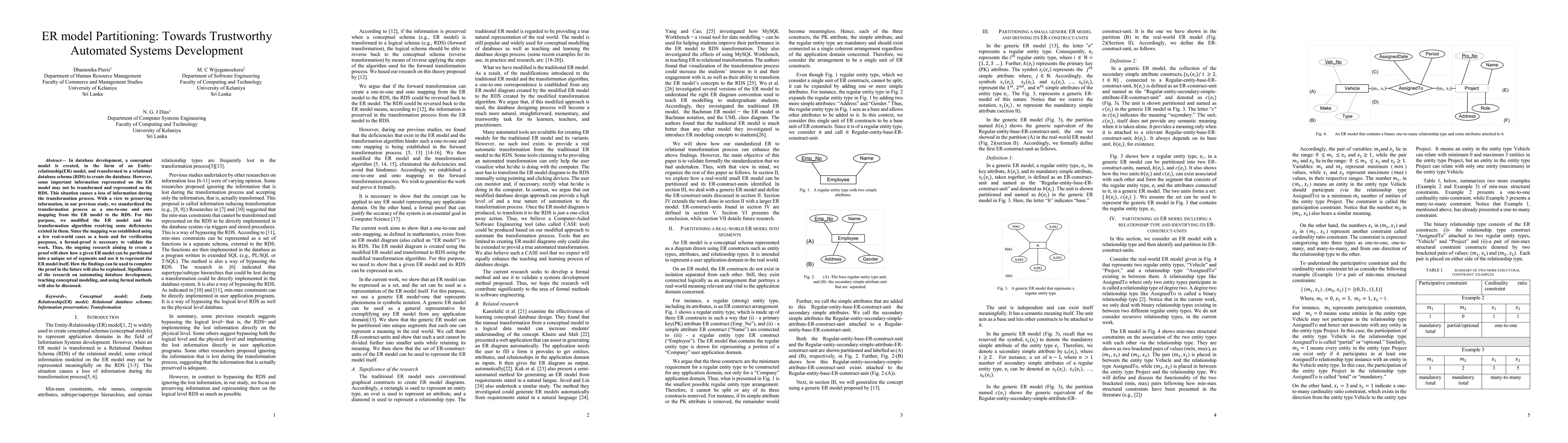 In database development, a conceptual model is created, in the form of an Entity-relationship(ER) model, and transformed to a relational database schema (RDS) to create the database. However, some important information represented on the ER model may not be transformed and represented on the RDS. This situation causes a loss of information during the transformation process. With a view to preserving information, in our previous study, we standardized the transformation process as a one-to-one and onto mapping from the ER model to the RDS. For this purpose, we modified the ER model and the transformation algorithm resolving some deficiencies existed in them. Since the mapping was established using a few real-world cases as a basis and for verification purposes, a formal-proof is necessary to validate the work. Thus, the ongoing research aiming to create a proof will show how a given ER model can be partitioned into a unique set of segments and use it to represent the ER model itself. How the findings can be used to complete the proof in the future will also be explained. Significance of the research on automating database development, teaching conceptual modeling, and using formal methods will also be discussed.