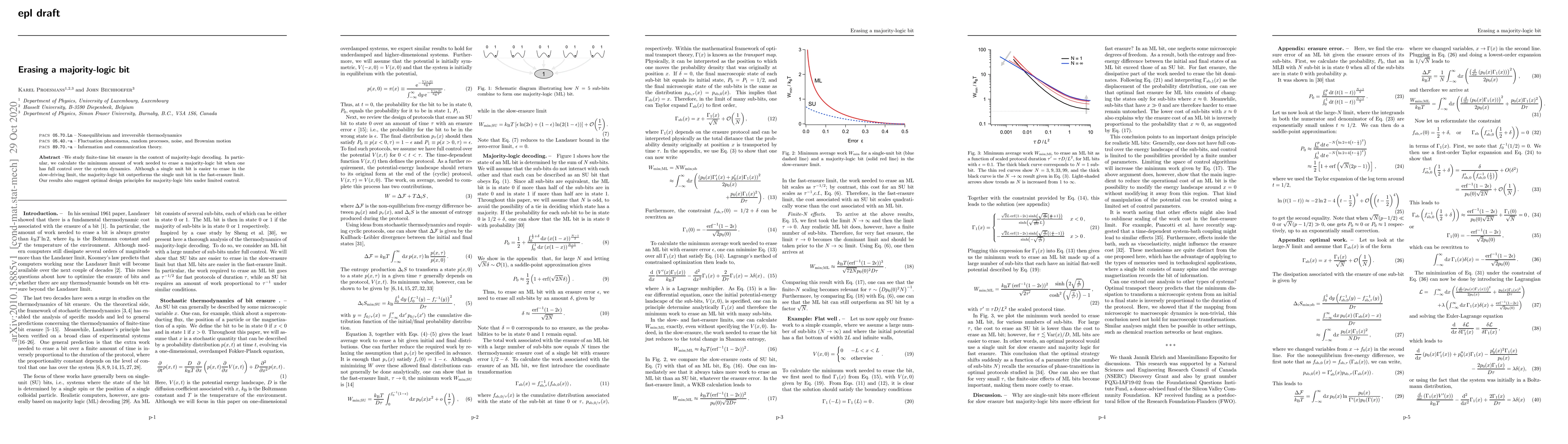 The paper investigates the minimum work required to erase a majority-logic bit in finite time, comparing it to a single unit bit, and finds that while a single bit is easier to erase slowly, the majority-logic bit is more efficient in fast erasure scenarios, providing insights into optimal design under limited control.