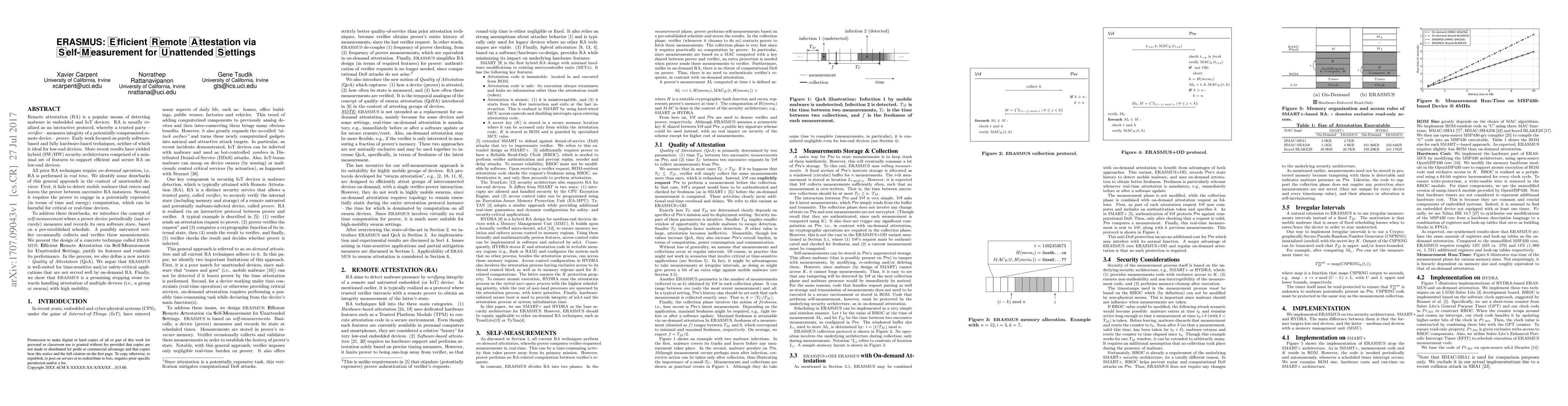 This paper introduces ERASMUS, a remote attestation system that allows devices to self-measure their software state, reducing the need for real-time interactions with verifiers. This approach is ideal for time-sensitive and safety-critical applications where on-demand attestation may be impractical or harmful.