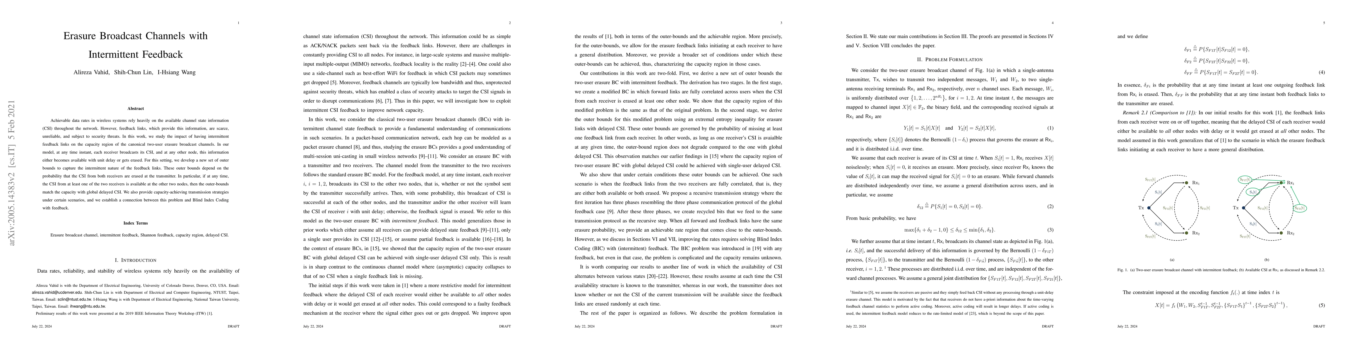 This paper explores the impact of intermittent feedback links on the capacity region of two-user erasure broadcast channels, developing new outer bounds based on the probability of CSI erasure. It also provides capacity-achieving strategies and links the problem to Blind Index Coding with feedback.