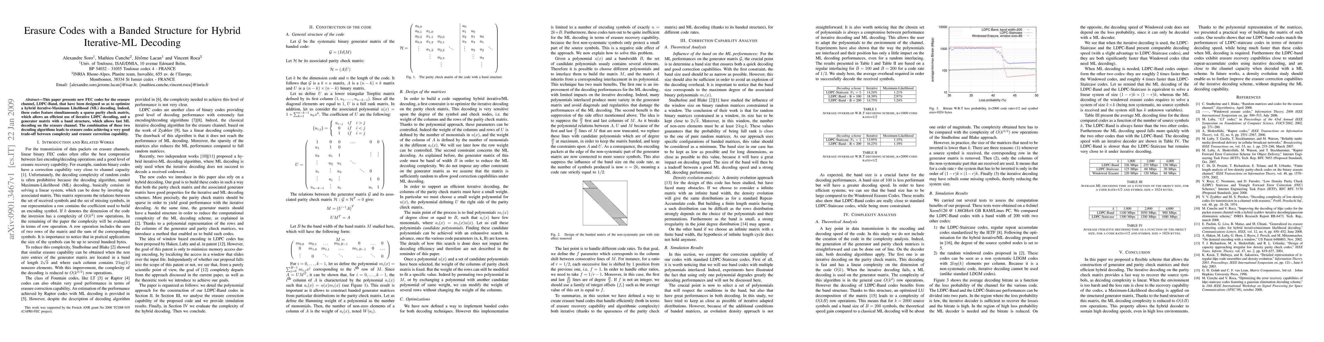 This paper presents new FEC codes for the erasure channel, LDPC-Band, that have been designed so as to optimize a hybrid iterative-Maximum Likelihood (ML) decoding. Indeed, these codes feature simultaneously a sparse parity check matrix, which allows an efficient use of iterative LDPC decoding, and a generator matrix with a band structure, which allows fast ML decoding on the erasure channel. The combination of these two decoding algorithms leads to erasure codes achieving a very good trade-off between complexity and erasure correction capability.