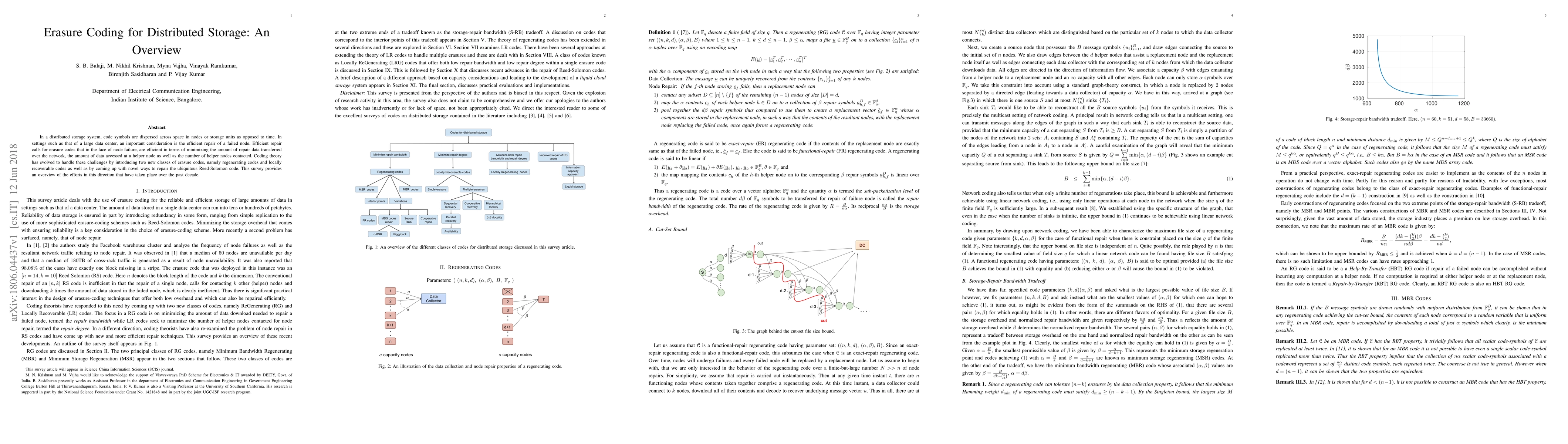 This paper surveys advancements in erasure coding for distributed storage systems, focusing on efficient node repair methods that minimize network data transfer, helper node data access, and the number of helper nodes contacted. It highlights the development of regenerating codes, locally recoverable codes, and novel repair techniques for Reed-Solomon codes over the last decade.