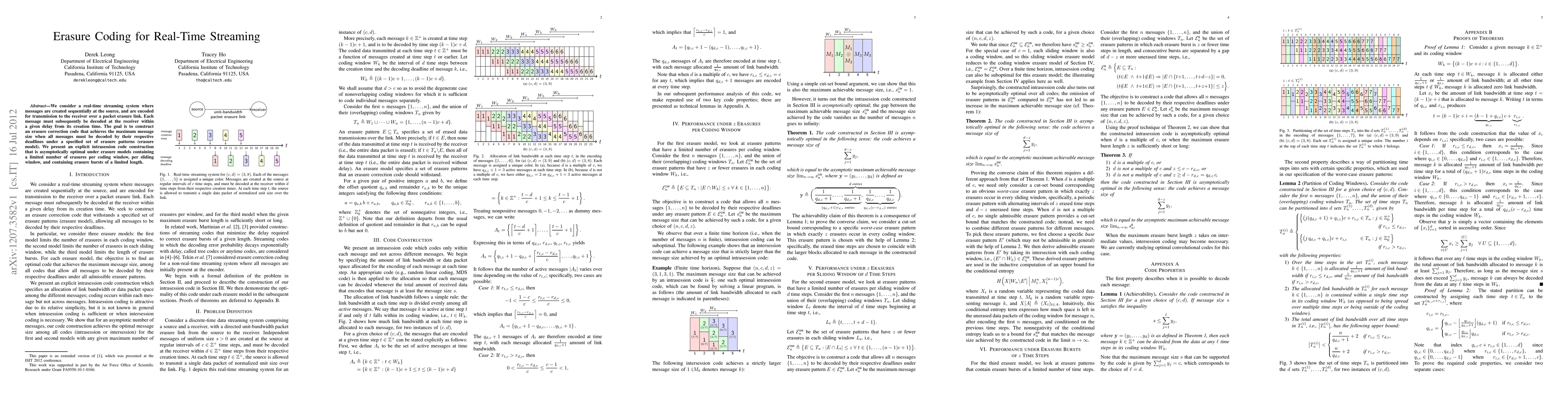 This paper proposes an erasure coding method for real-time streaming systems to maximize message size within decoding deadlines under specified erasure patterns. The presented intrasession code construction is asymptotically optimal for scenarios with limited erasures and bursts.