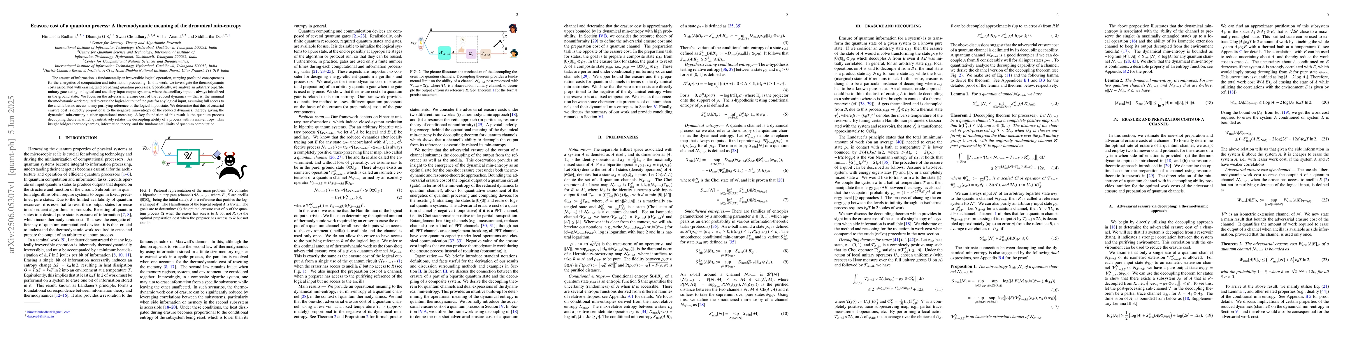 The research investigates thermodynamic costs of erasing and preparing quantum processes, focusing on the adversarial erasure cost of a bipartite unitary gate's reduced dynamics, utilizing the quantum process decoupling theorem.