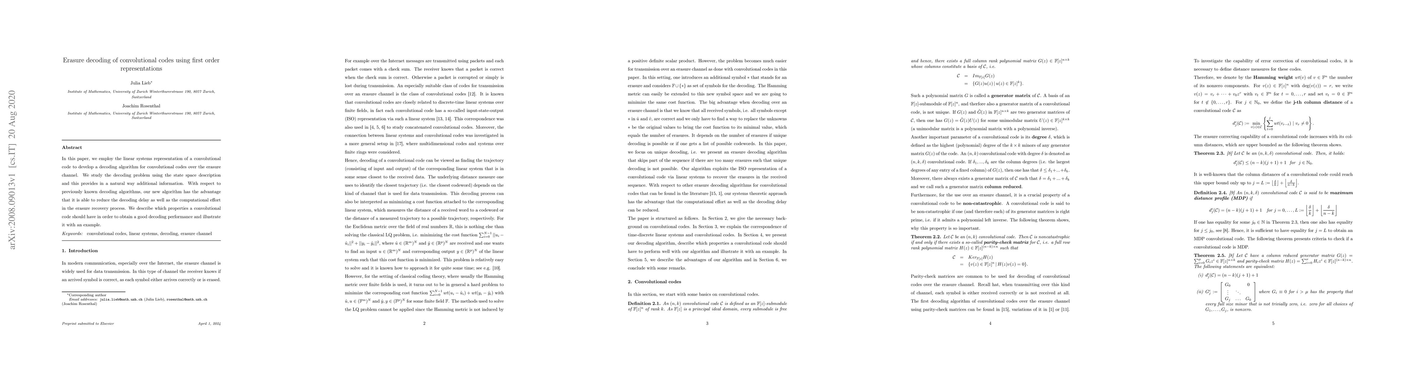 This paper proposes a novel decoding algorithm for convolutional codes over erasure channels, utilizing first-order linear systems representations. It reduces decoding delay and computational effort compared to existing methods and illustrates optimal code properties for effective decoding.