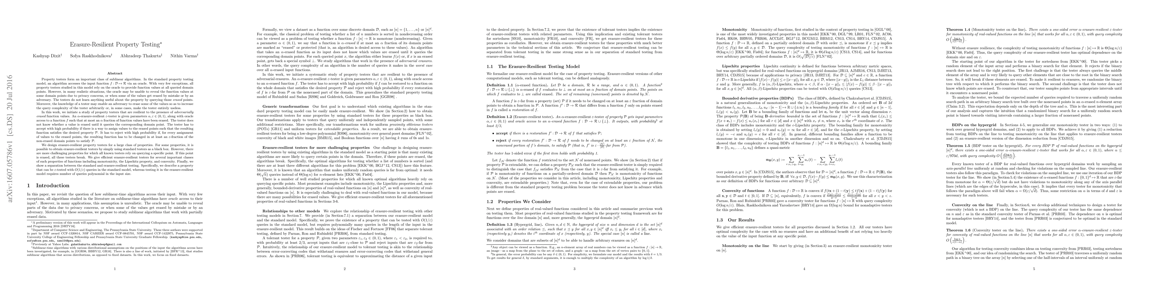 This paper initiates the study of erasure-resilient property testers, which can handle adversarially erased function values in their input. The authors design efficient erasure-resilient testers for various properties, including monotonicity, Lipschitz, and convexity, and highlight the increased complexity of testing some properties in the erasure-resilient model.
