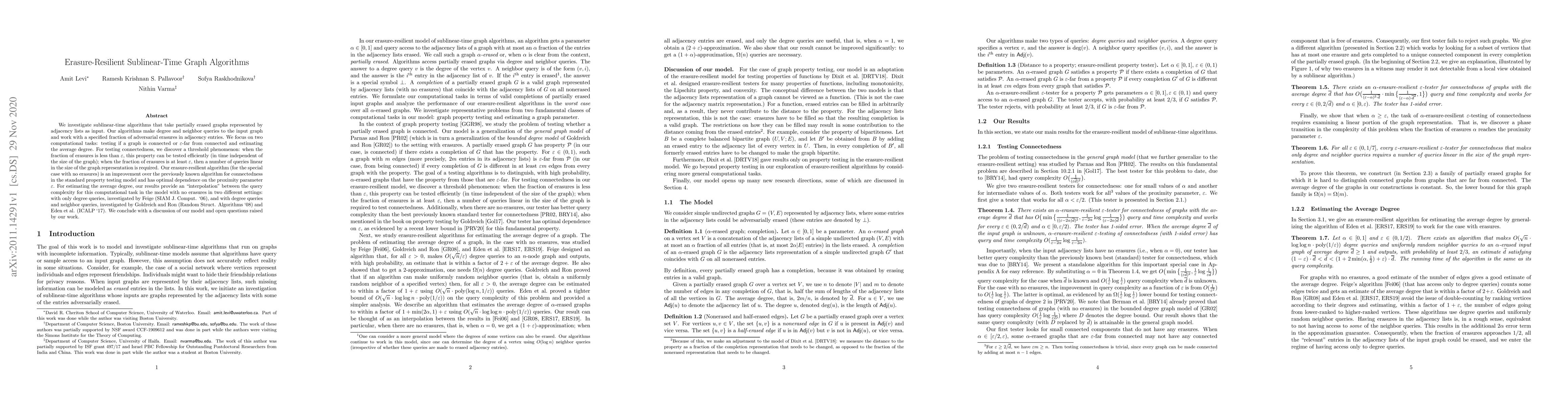 This paper explores sublinear-time algorithms for processing partially erased graphs, focusing on testing graph connectedness and estimating average degree under adversarial erasures. It discovers a threshold for efficient connectedness testing and provides an optimal algorithm for this task, while also interpolating between different query complexity models for average degree estimation.