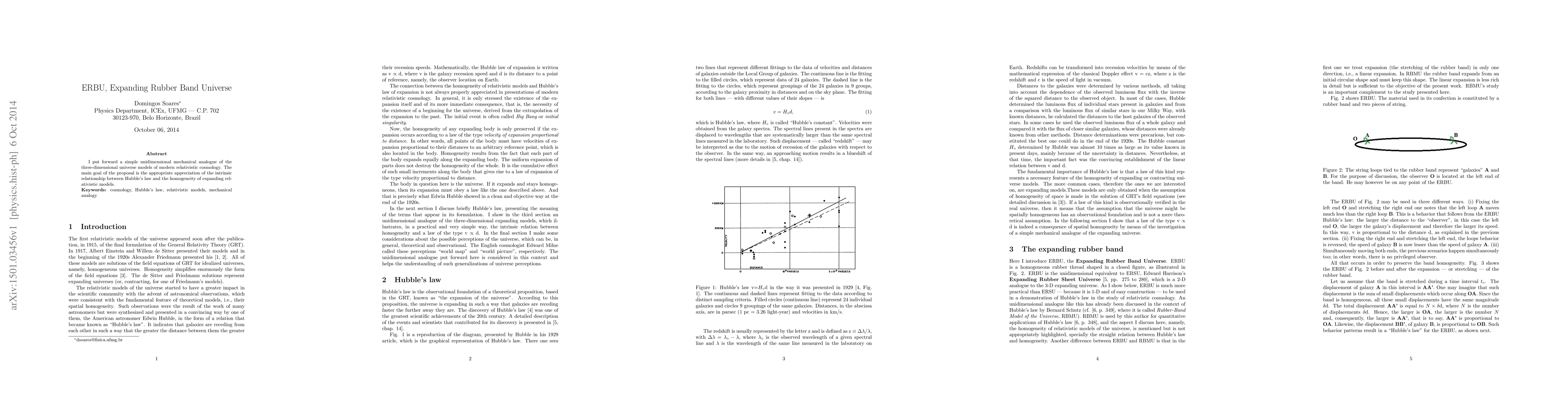 Summary: This paper proposes a unidimensional mechanical analogue to model three-dimensional relativistic cosmology, aiming to clarify the intrinsic link between Hubble's law and the homogeneity of expanding universe models.