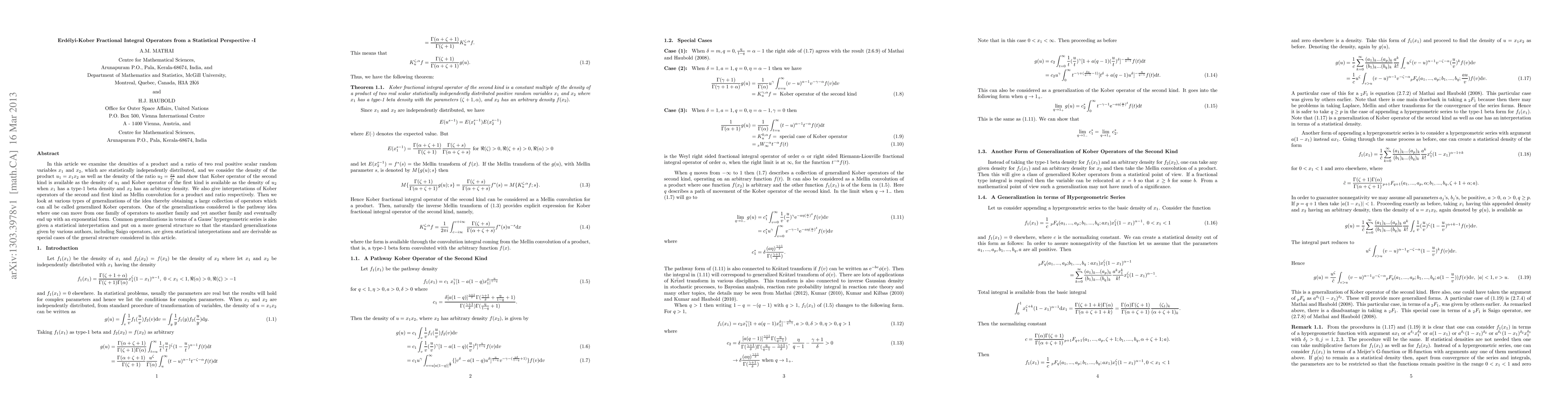 This paper explores the statistical properties of the densities of products and ratios of two independent random variables, showing that the densities of these products and ratios can be represented by Kober fractional integral operators. It also generalizes these operators and provides statistical interpretations for various forms, including Saigo operators.