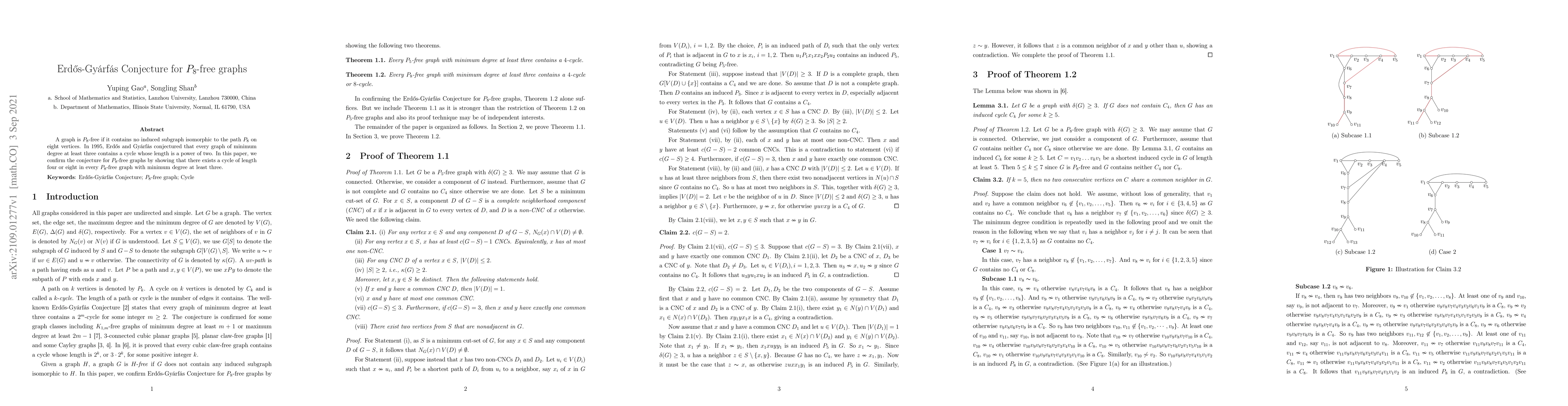 Summary: This paper confirms the Erdős-Gyárfás Conjecture for $P_8$-free graphs, proving that every $P_8$-free graph with minimum degree three contains a cycle of length four or eight. The result supports the broader conjecture that such graphs must contain cycles whose lengths are powers of two.