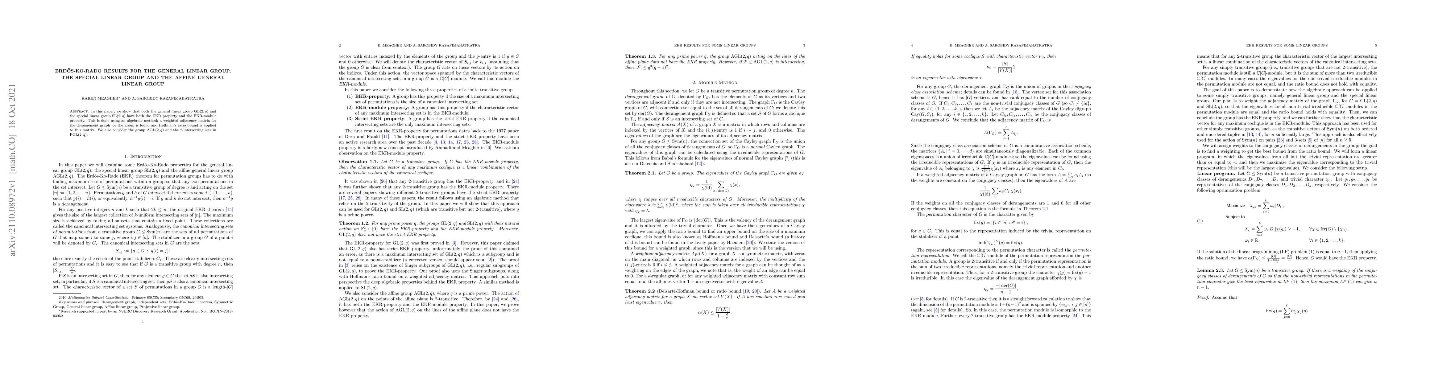 Researchers prove that certain groups in linear algebra, including general linear and special linear groups, have specific properties related to EKR (Erdos-Ko-Rado) sets, and also explore their connections to 2-intersecting sets in projective linear groups.
