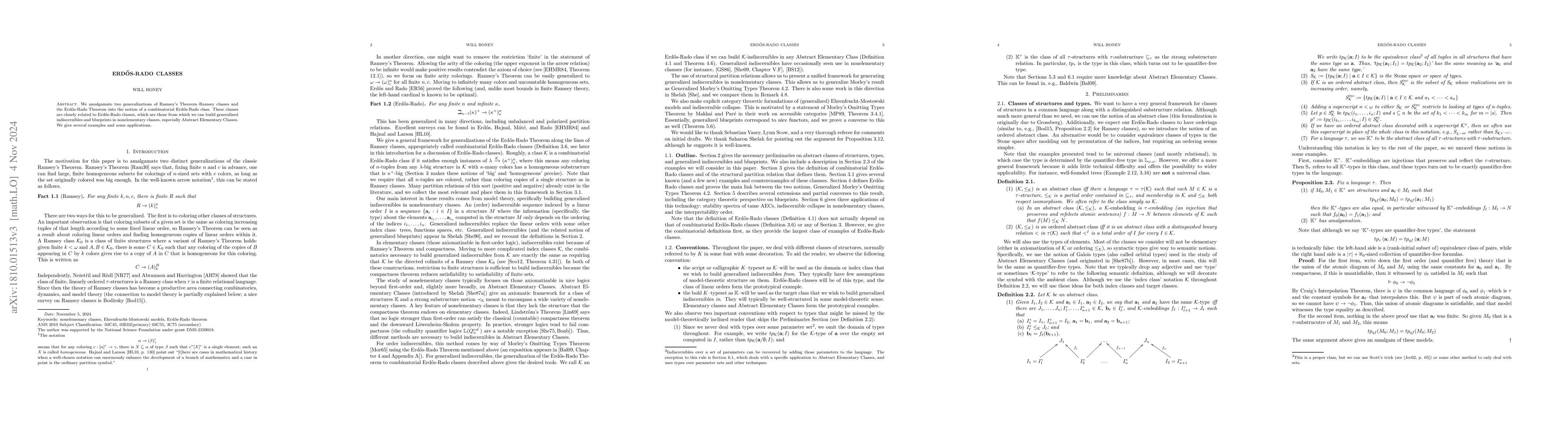 This paper introduces the concept of combinatorial Erdős-Rado classes by merging Ramsey classes and the Erdős-Rado Theorem. These classes are significant for constructing generalized indiscernibles and blueprints in nonelementary and Abstract Elementary Classes, providing several illustrative examples and applications.