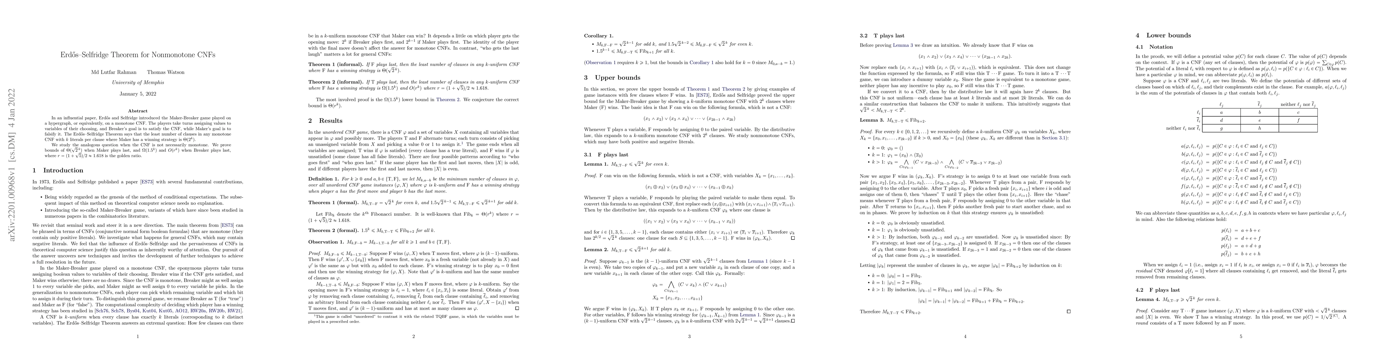 This paper extends the Erdős-Selfridge Theorem to nonmonotone CNFs, proving that when Maker plays last, the least number of clauses needed for a winning strategy is $\Theta(\sqrt{2}^k)$, while when Breaker plays last, it is $\Omega(1.5^k)$ and $O(r^k)$, where $r$ is the golden ratio.