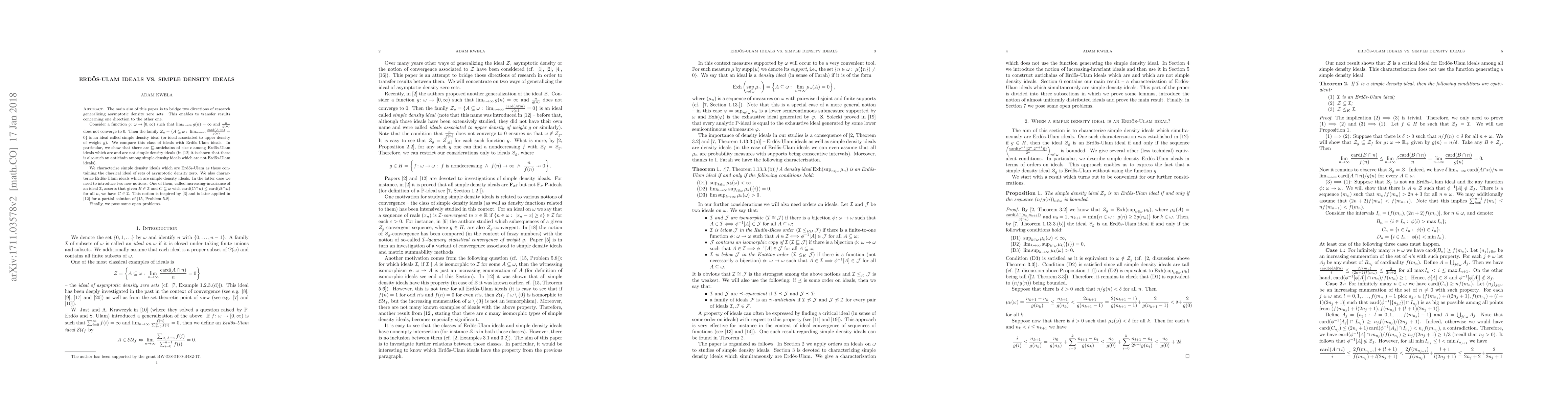 This paper compares Erd extos-Ulam ideals with simple density ideals, finding that certain ideals have specific properties such as increasing-invariance, and opening up new research directions in the field of asymptotic density zero sets.