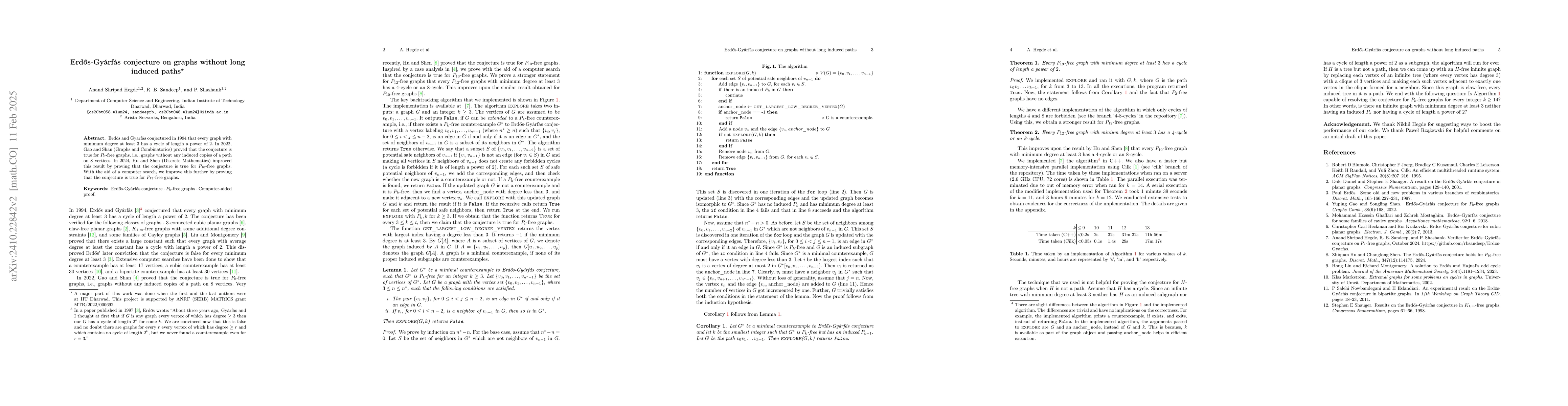 Summary: In 2022, Gao and Shan proved Erdős-Gyárfás conjecture for $P_8$-free graphs, and in 2024, Hu and Shen extended this to $P_{10}$-free graphs. The latest research further proves the conjecture for $P_{13}$-free graphs using computational methods.