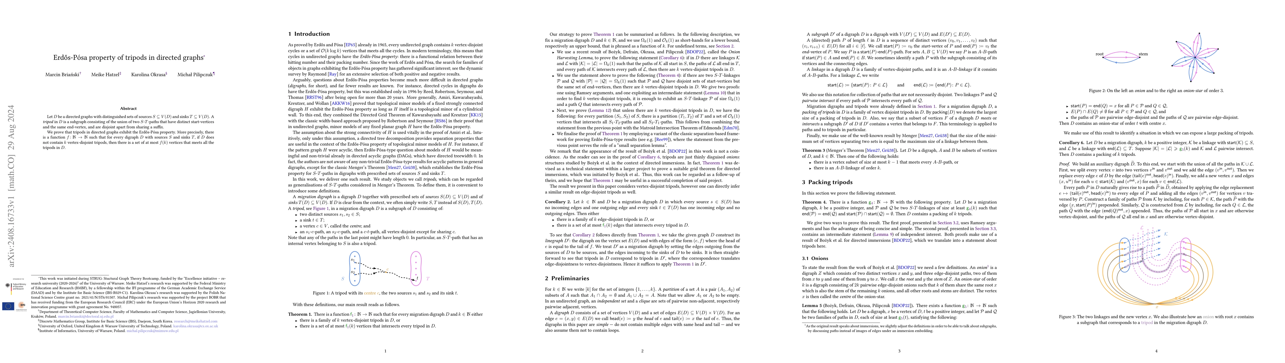 Summary: This paper proves that tripods in directed graphs possess the Erdős-Pósa property, meaning that for any such graph $D$ with source and sink sets, if $D$ lacks $k$ vertex-disjoint tripods, there exists a vertex set of size at most $f(k)$ intersecting all possible tripods.