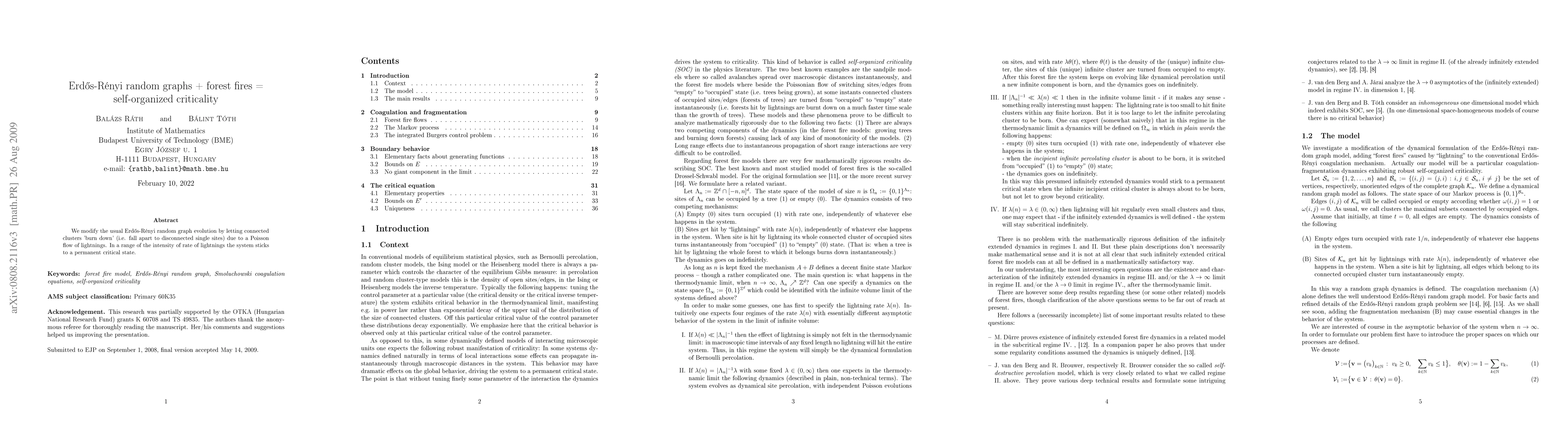 We modify the usual Erdos-Renyi random graph evolution by letting connected clusters 'burn down' (i.e. fall apart to disconnected single sites) due to a Poisson flow of lightnings. In a range of the intensity of rate of lightnings the system sticks to a permanent critical state.