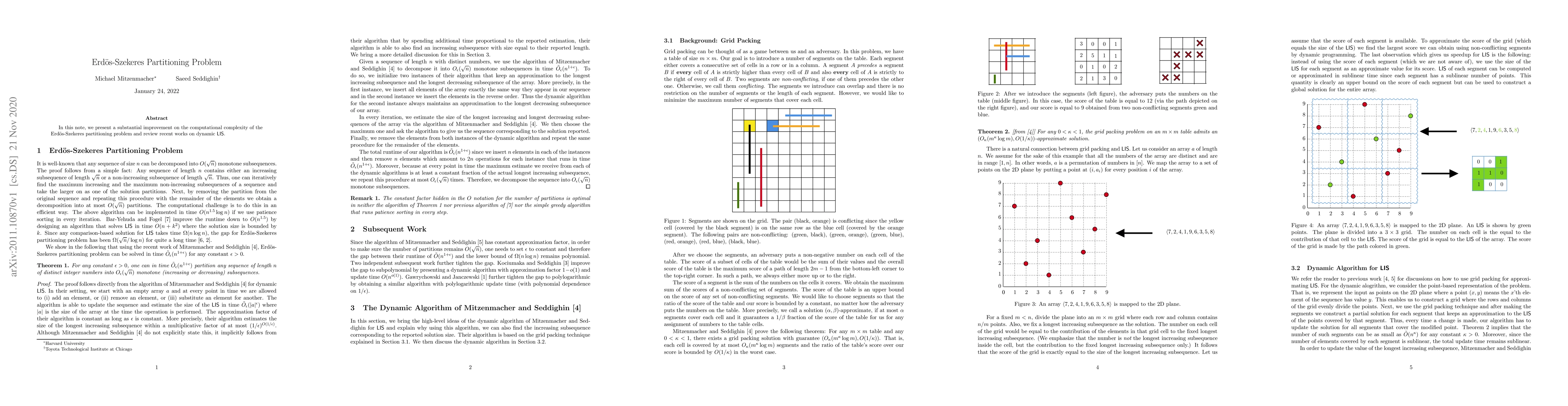 Summary: This paper significantly enhances the computational complexity of the Erdős-Szekeres partitioning problem and examines recent developments in dynamic longest increasing subsequence (LIS) algorithms.