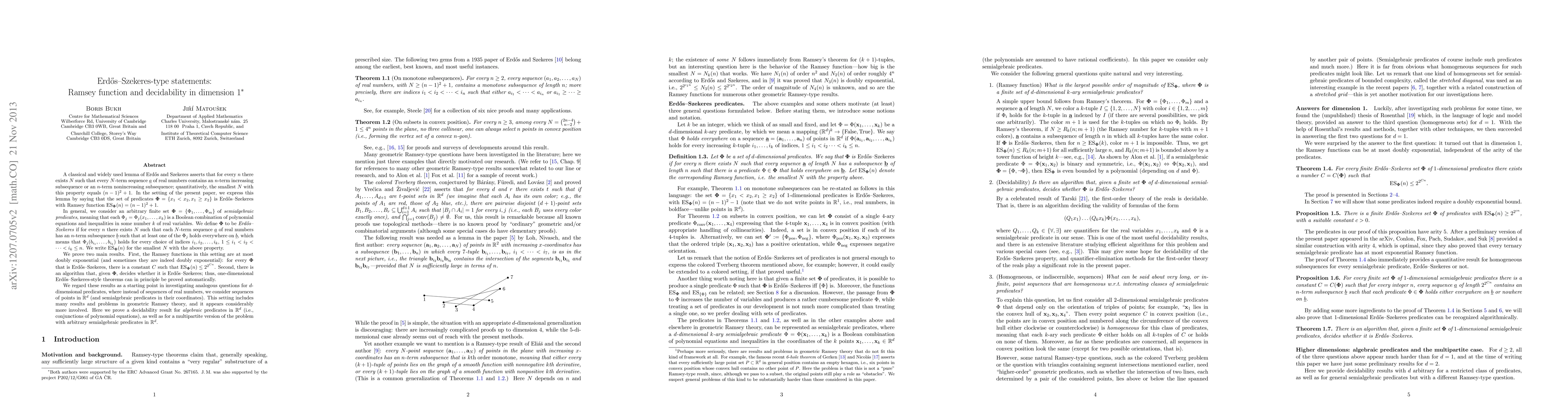 Researchers prove that Ramsey functions for Erdos-Szekeres-type statements in dimension 1 can be at most doubly exponential, and develop an algorithm to automatically decide whether a statement is Erdos-Szekeres.