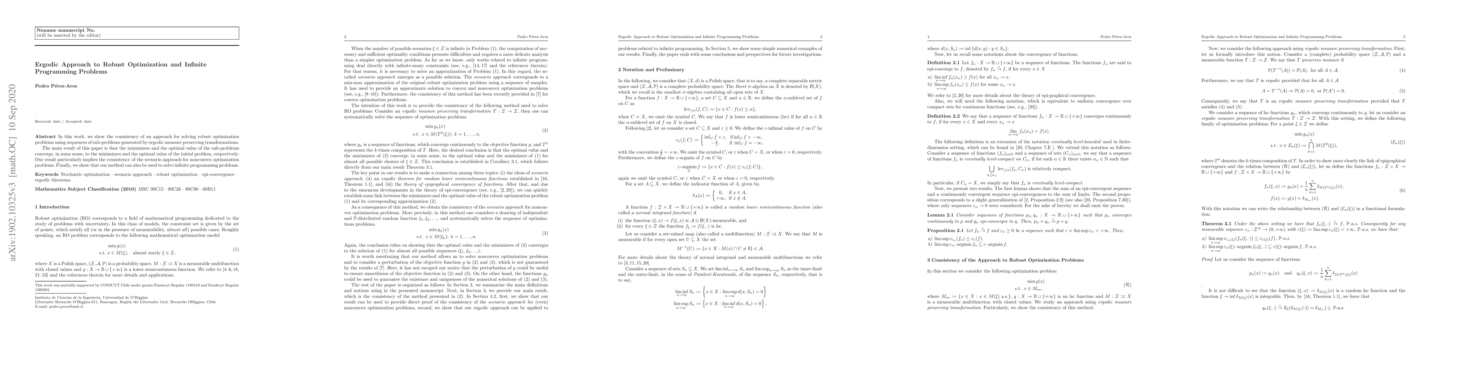 This paper proposes an ergodic approach for solving robust optimization problems, demonstrating that solutions from generated sub-problems converge to the original problem's optimal solutions. The method also extends to addressing infinite programming problems.