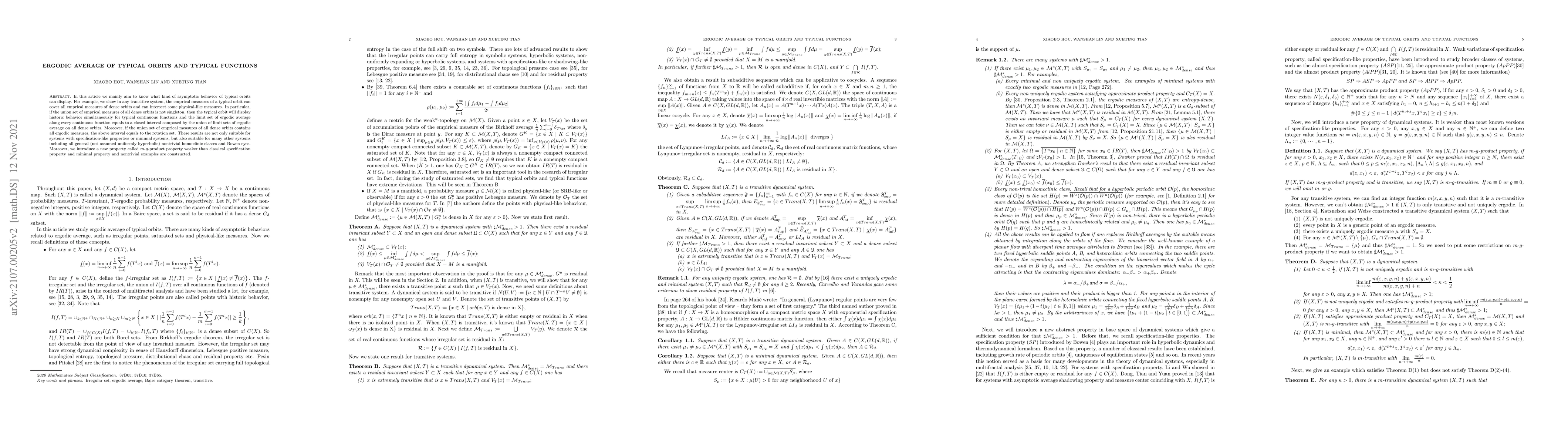 This paper investigates the asymptotic behavior of typical orbits in dynamical systems, showing that empirical measures of typical orbits cover those of dense orbits and intersect physical-like measures. It introduces a new m-g-product property, demonstrating that typical orbits exhibit historic behavior for typical continuous functions, with the limit set of ergodic averages forming a closed interval encompassing the union of limit sets from dense orbits.