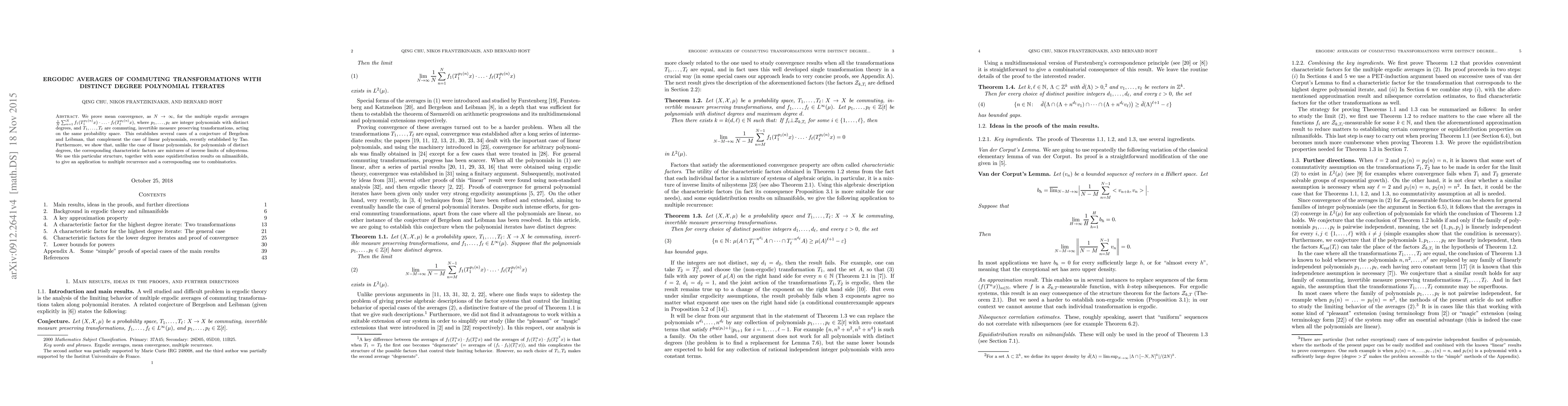 This paper proves mean convergence for ergodic averages involving commuting transformations with integer polynomial iterates of distinct degrees, establishing cases of a conjecture by Bergelson and Leibman. It also shows that the characteristic factors for these polynomials are mixtures of inverse limits of nilsystems, leading to applications in multiple recurrence and combinatorics.