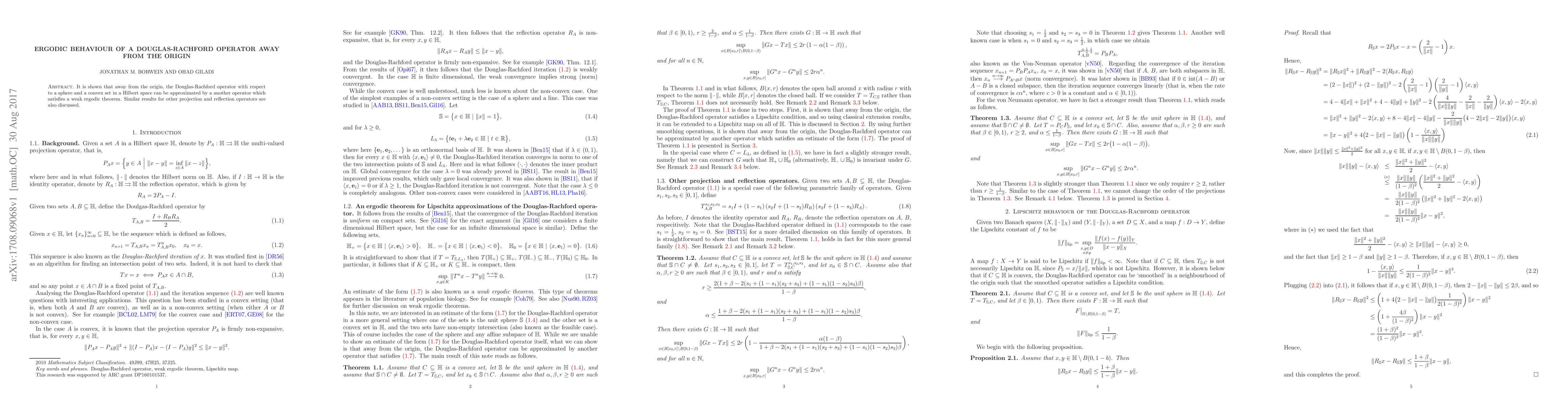Research shows that a Douglas-Rachford operator can be approximated near points not at the origin in a Hilbert space, leading to ergodic behavior under certain conditions.
