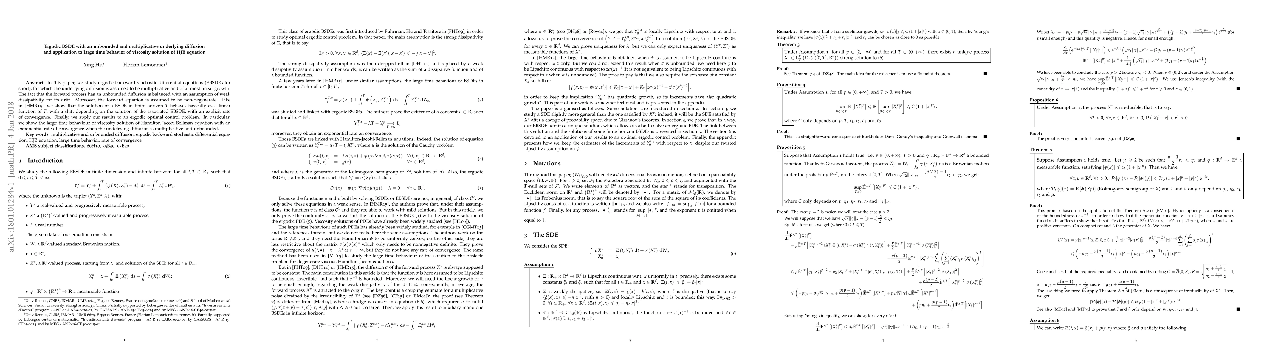 This paper studies ergodic backward stochastic differential equations with unbounded multiplicative diffusion, showing that solutions behave like linear functions of time and exhibit exponential convergence to the viscosity solution of a related HJB equation.