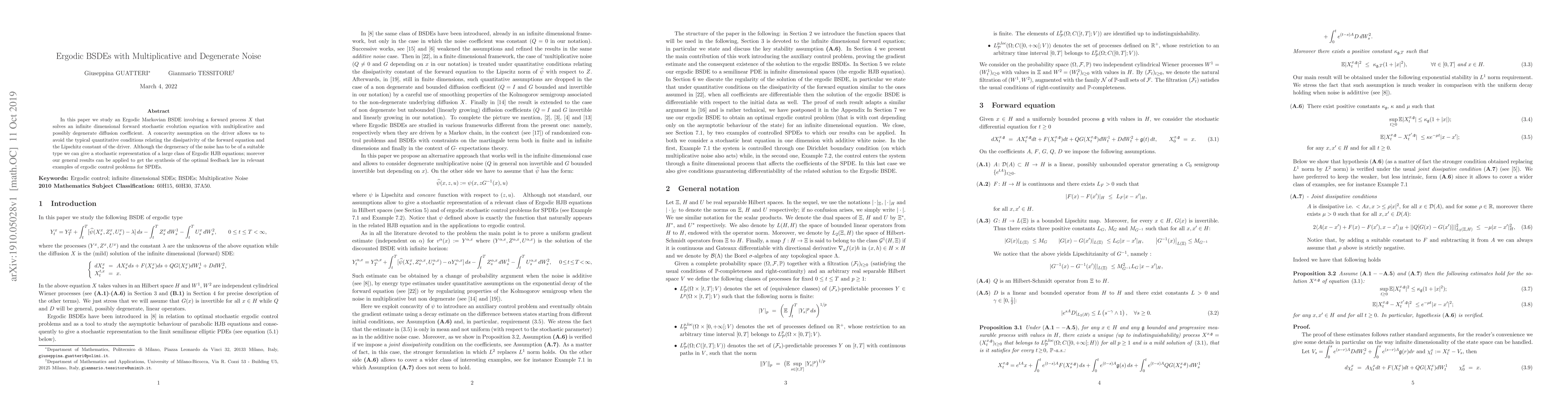 This paper investigates Ergodic Markovian BSDEs with multiplicative and degenerate noise, deriving a stochastic representation for a broad class of Ergodic HJB equations without typical quantitative conditions. The study applies the results to synthesize optimal feedback laws in ergodic control problems for SPDEs.