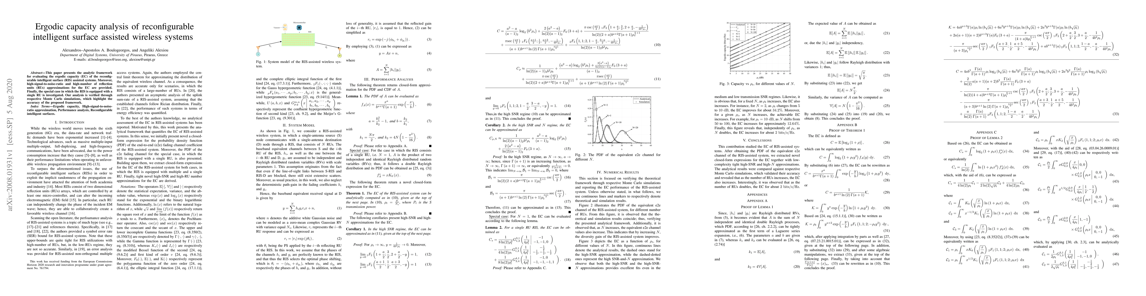 This paper develops an analytic framework to evaluate the ergodic capacity of reconfigurable intelligent surface (RIS) assisted wireless systems, providing approximations for high SNR and numerous reflection units, and investigates the case with a single RU. The proposed framework is validated through Monte Carlo simulations.