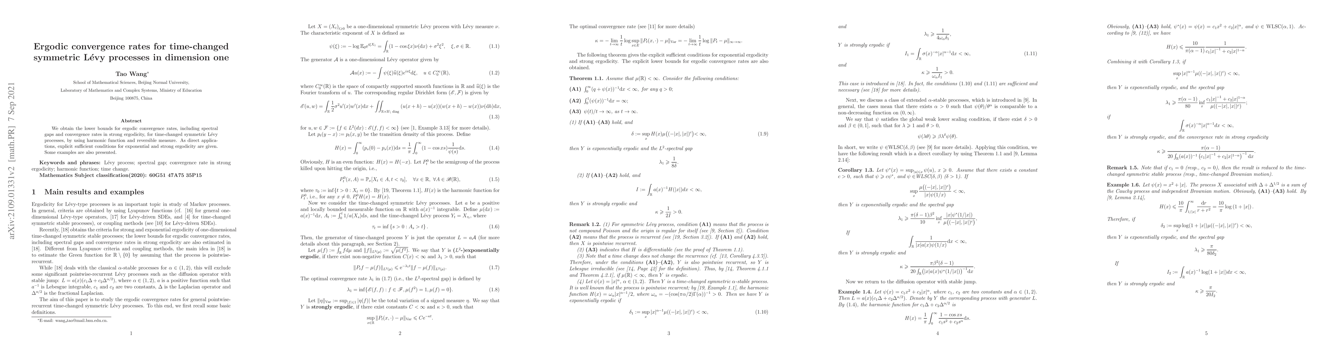This paper establishes lower bounds for ergodic convergence rates of time-changed symmetric Lévy processes in one dimension, utilizing harmonic functions and reversible measures. It provides explicit conditions for exponential and strong ergodicity, along with illustrative examples.
