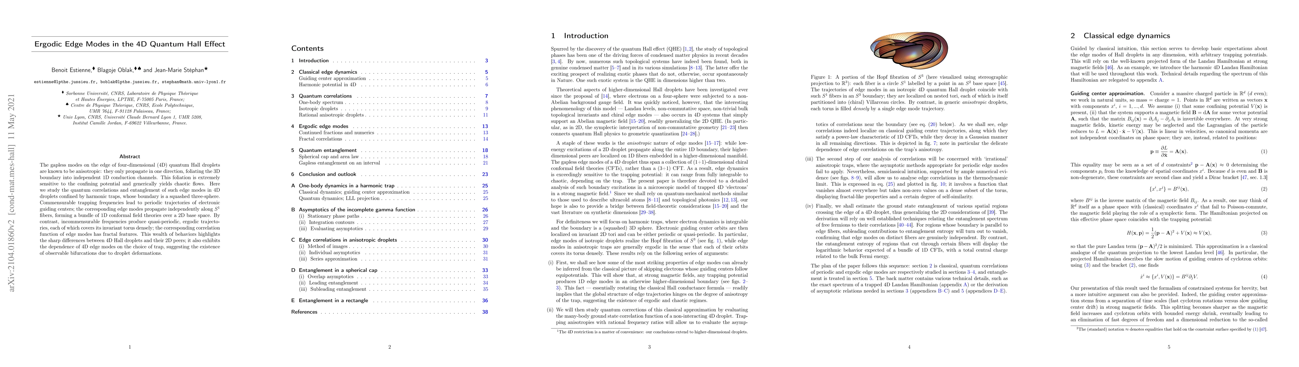 Researchers studied the edge modes in 4D quantum Hall droplets confined by harmonic traps, finding that commensurable frequencies lead to periodic trajectories with independent 1D channels, while incommensurable frequencies produce quasi-periodic ergodic flows with fractal features.