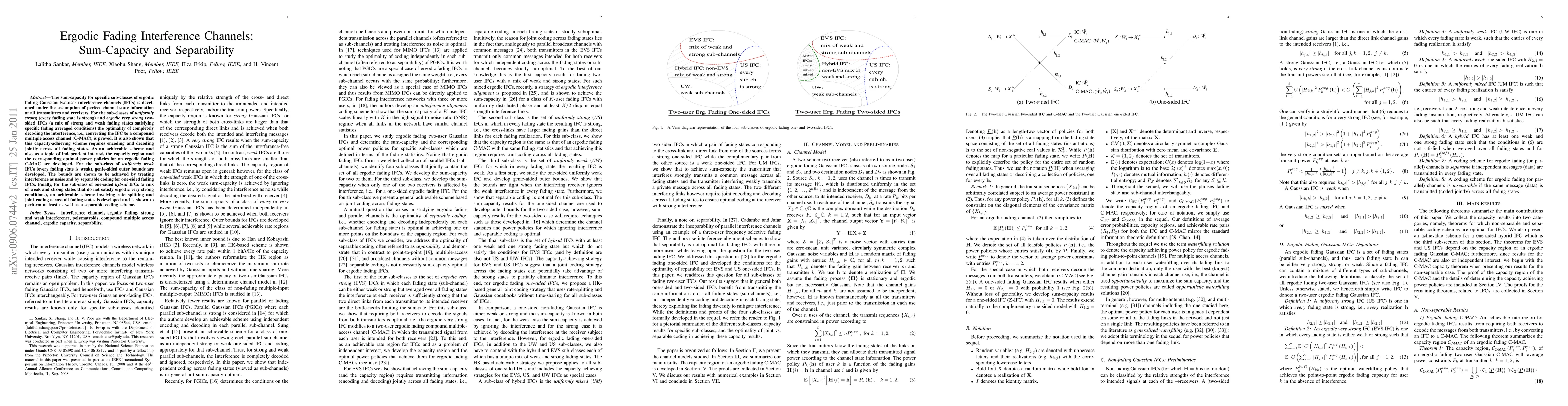 This paper develops sum-capacity and separability strategies for various sub-classes of ergodic fading interference channels, proving the optimality of completely decoding interference for uniformly strong and ergodic very strong channels. It also explores achievable schemes and optimal power policies for compound multiple access channels, and provides genie-aided outer bounds for uniformly weak channels.