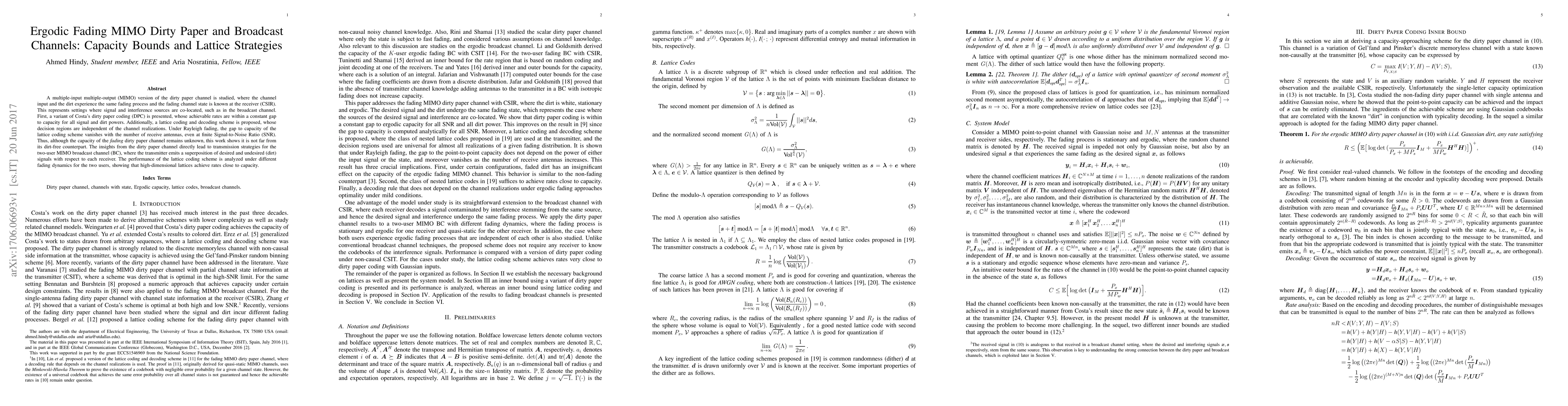 This paper explores MIMO versions of the dirty paper channel with ergodic fading, proposing a variant of Costa's coding that achieves near-capacity rates. It introduces a lattice coding scheme that converges to capacity with more receive antennas under Rayleigh fading, providing insights for MIMO broadcast channel strategies.