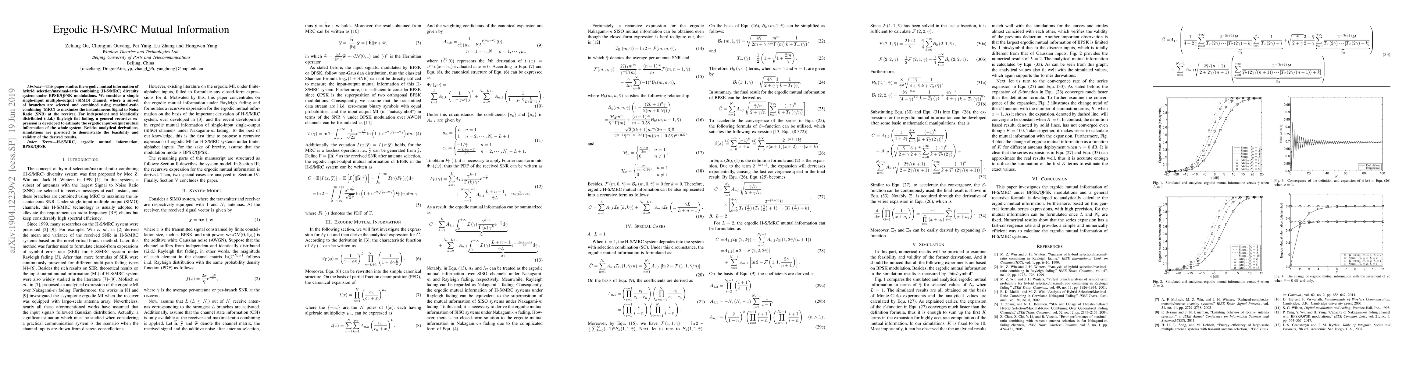 This paper develops a recursive expression for estimating the ergodic mutual information of a hybrid selection/maximal-ratio combining (H-S/MRC) diversity system under BPSK/QPSK modulations, considering a single-input multiple-output (SIMO) channel with Rayleigh fading. Simulations validate the analytical results.