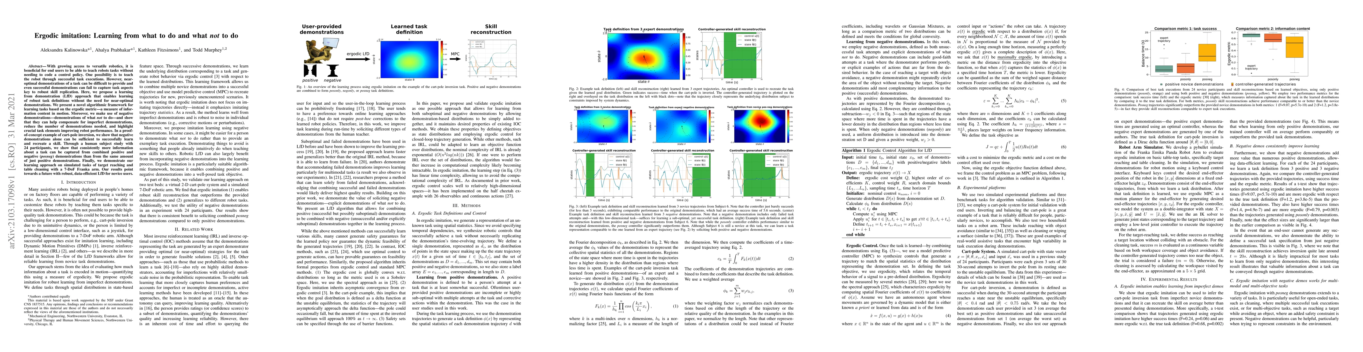 This paper proposes a learning from demonstration (LfD) approach that leverages both positive and negative demonstrations to teach robots tasks without requiring near-optimal demonstrations. The method uses an ergodic metric to measure information content and shows that negative demonstrations can enhance task learning, reduce demonstration numbers, and improve robot performance.