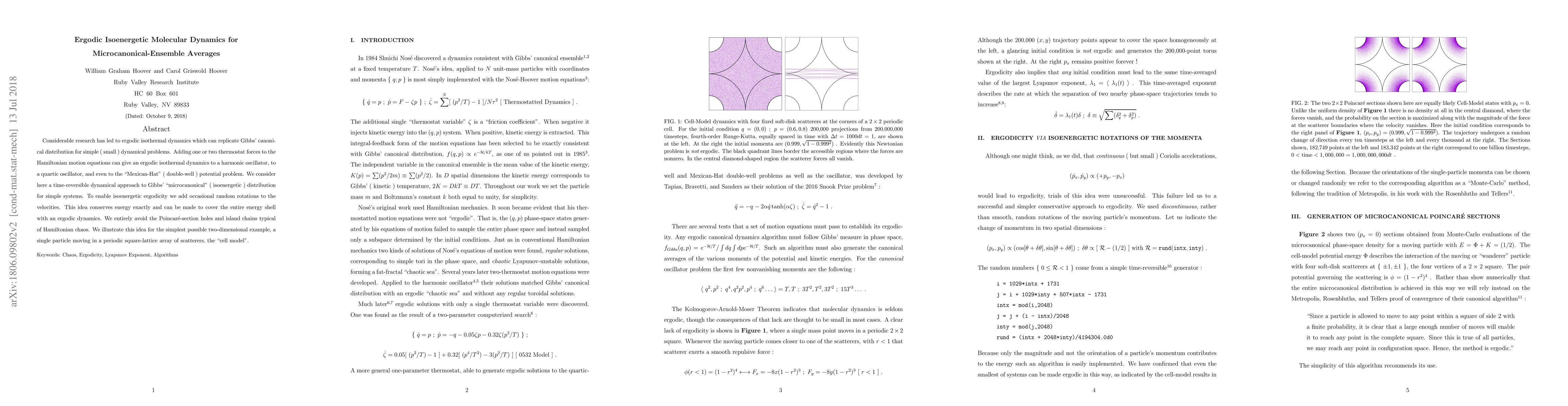 Considerable research has led to ergodic isothermal dynamics which can replicate Gibbs' canonical distribution for simple ( small ) dynamical problems. Adding one or two thermostat forces to the Hamiltonian motion equations can give an ergodic isothermal dynamics to a harmonic oscillator, to a quartic oscillator, and even to the "Mexican-Hat" ( double-well ) potential problem. We consider here a time-reversible dynamical approach to Gibbs' "microcanonical" ( isoenergetic ) distribution for simple systems. To enable isoenergetic ergodicity we add occasional random rotations to the velocities. This idea conserves energy exactly and can be made to cover the entire energy shell with an ergodic dynamics. We entirely avoid the Poincar\'e-section holes and island chains typical of Hamiltonian chaos. We illustrate this idea for the simplest possible two-dimensional example, a single particle moving in a periodic square-lattice array of scatterers, the "cell model".