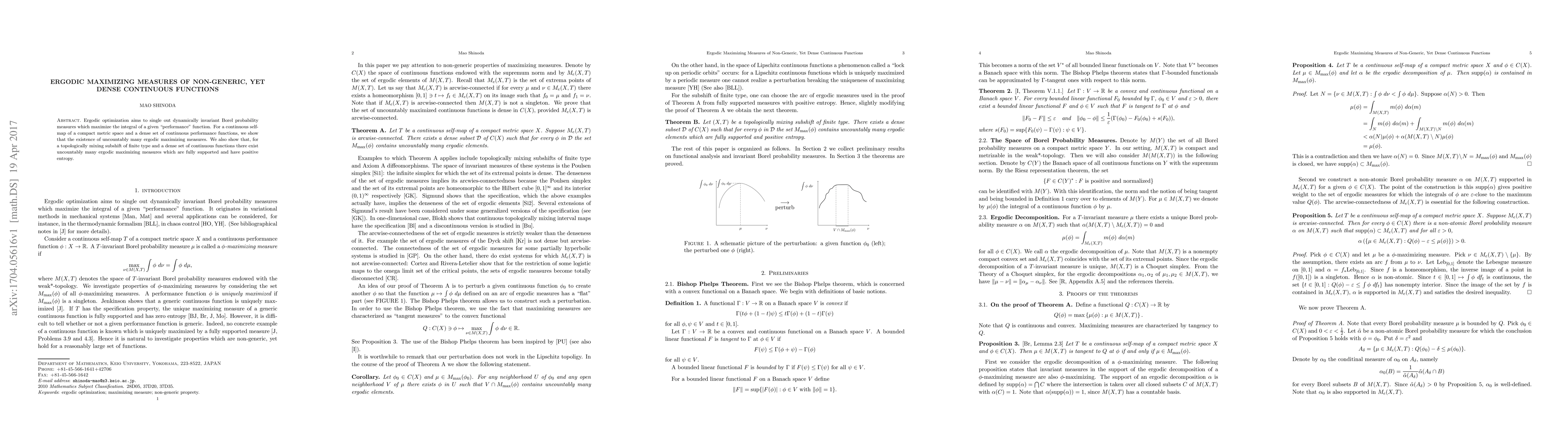 This paper demonstrates the existence of uncountably many ergodic maximizing measures for dense sets of continuous functions on compact metric spaces and topologically mixing subshifts of finite type, highlighting their fully supported nature and positive entropy.