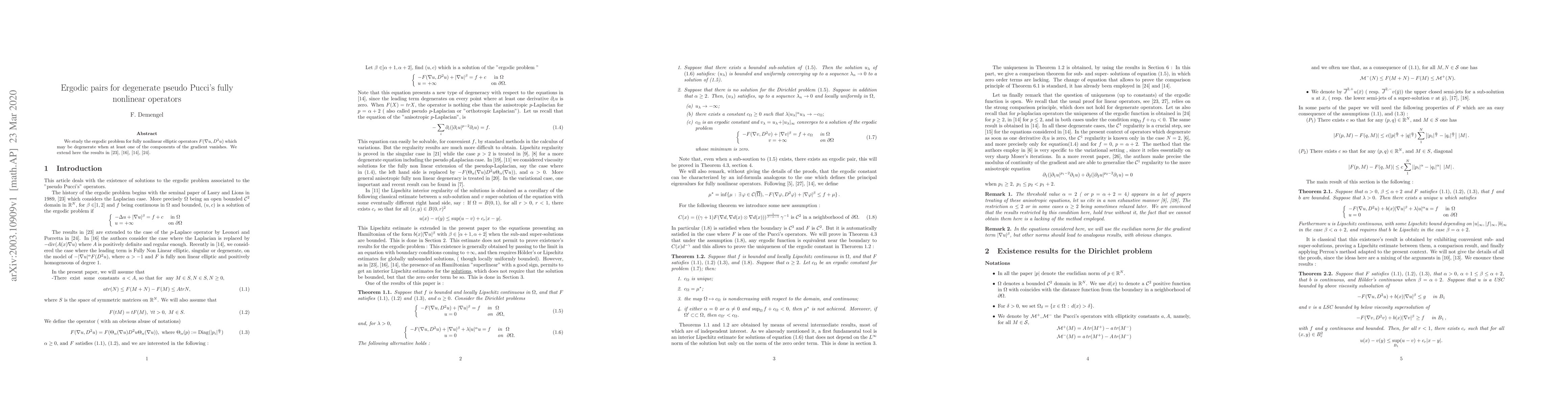 This paper investigates the ergodic problem for degenerate fully nonlinear elliptic operators, extending previous results by Lasry and Lions, and others, to scenarios where the gradient of the function may vanish in some components. The study aims to understand the behavior of such operators under ergodic conditions.