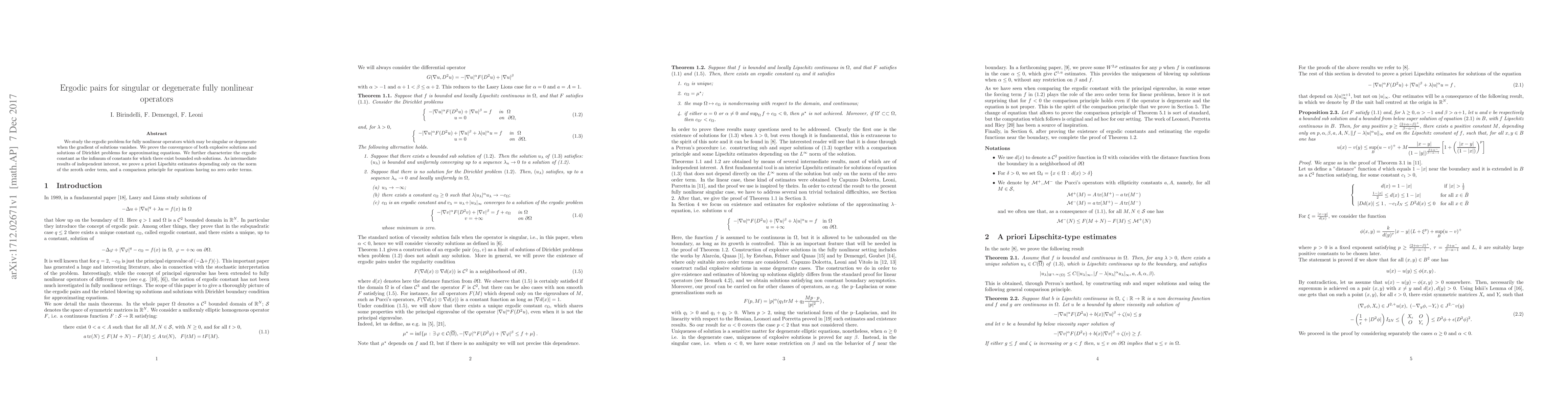 This paper investigates the ergodic problem for singular or degenerate fully nonlinear operators, proving the convergence of explosive solutions and Dirichlet problem solutions. It also characterizes the ergodic constant and provides a priori Lipschitz estimates and a comparison principle as significant intermediate results.