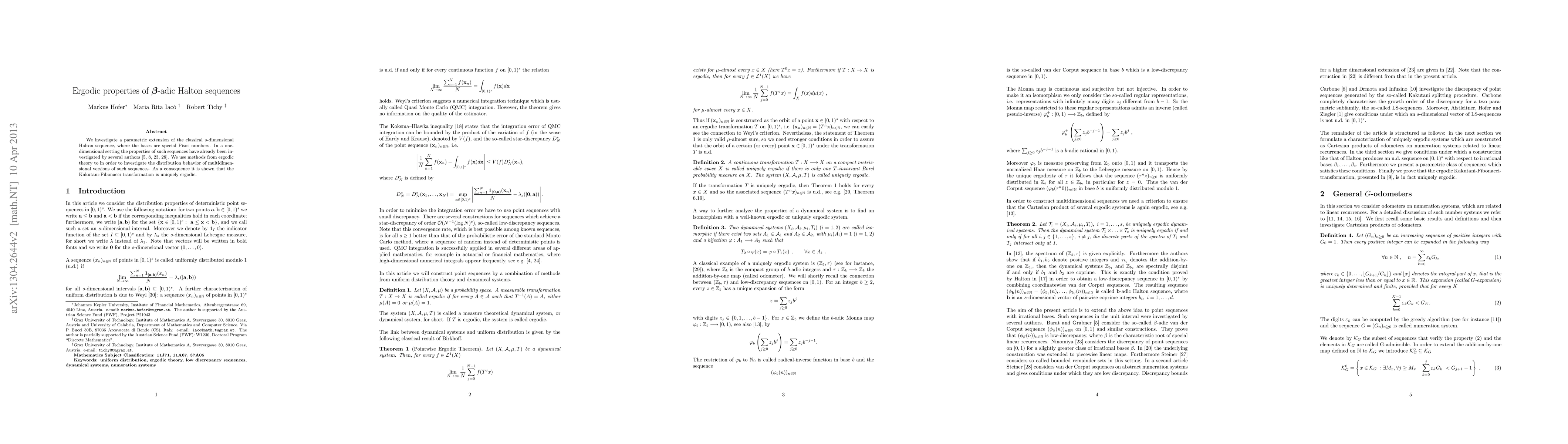 This paper explores the ergodic properties of {\beta}-adic Halton sequences based on Pisot numbers, employing ergodic theory to analyze their distribution behavior. It concludes that the Kakutani-Fibonacci transformation associated with these sequences is uniquely ergodic.