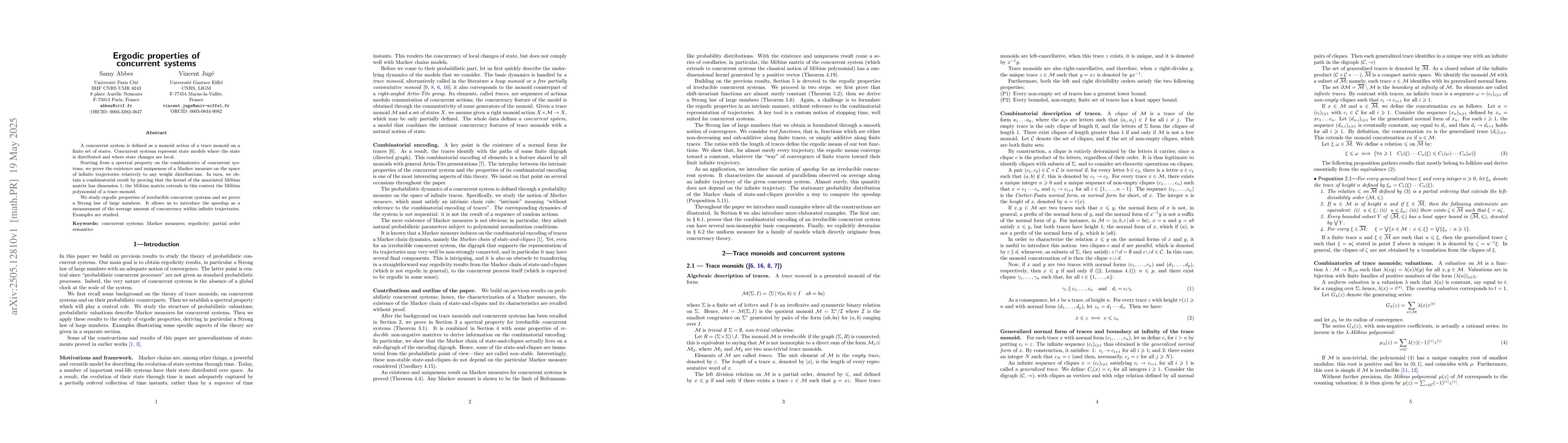 This research contributes to understanding ergodic properties of concurrent systems, which are crucial in distributed state models, with potential applications in computer science and mathematics.